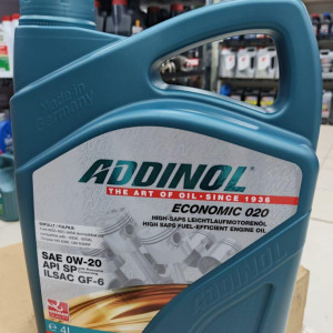 PKR 10900ADDINOL offers the Economic 020 0W-20 engine oil in a 4-liter pack, designed to provide excellent fuel efficiency and superior protection for modern gasoline engines. This fully synthetic oil ensures optimal performance, especially during cold starts, and contributes to extended engine life.