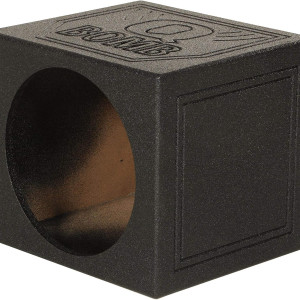 PKR 9000he QPower QBomb12V is a dual 12-inch vented subwoofer enclosure designed to enhance the bass performance of your car audio system. Constructed from 0.75-inch MDF (Medium-Density Fiberboard), this enclosure is finished with a black bedliner spray for increased durability and a sleek appearance. It features a dual vented chamber design with a middle slot port, providing 1.5 cubic feet of air space per subwoofer.
